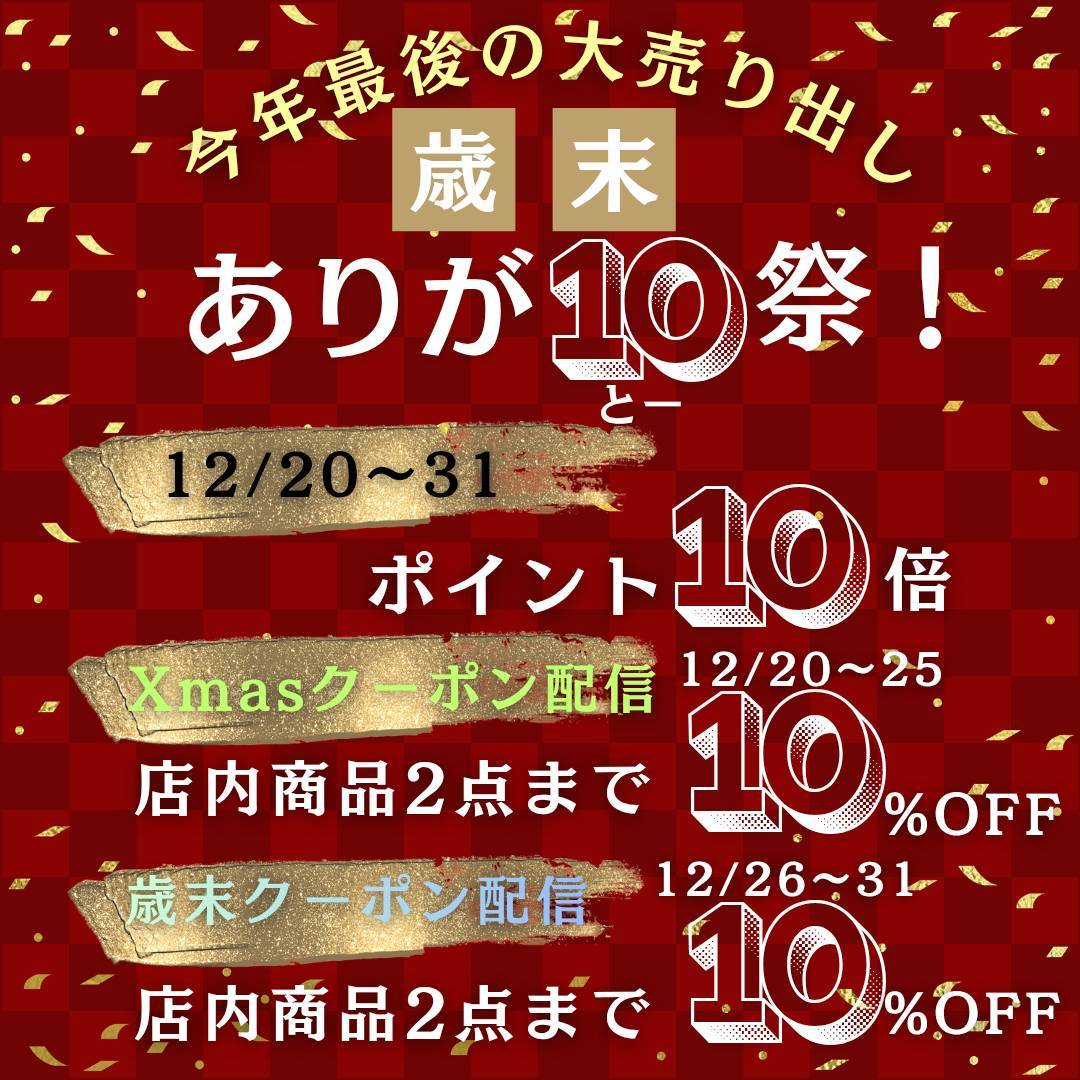 20日から大みそかまで『ありがとー祭』開催!LINE会員様には2点10%OFFのクーポンも配信中です。