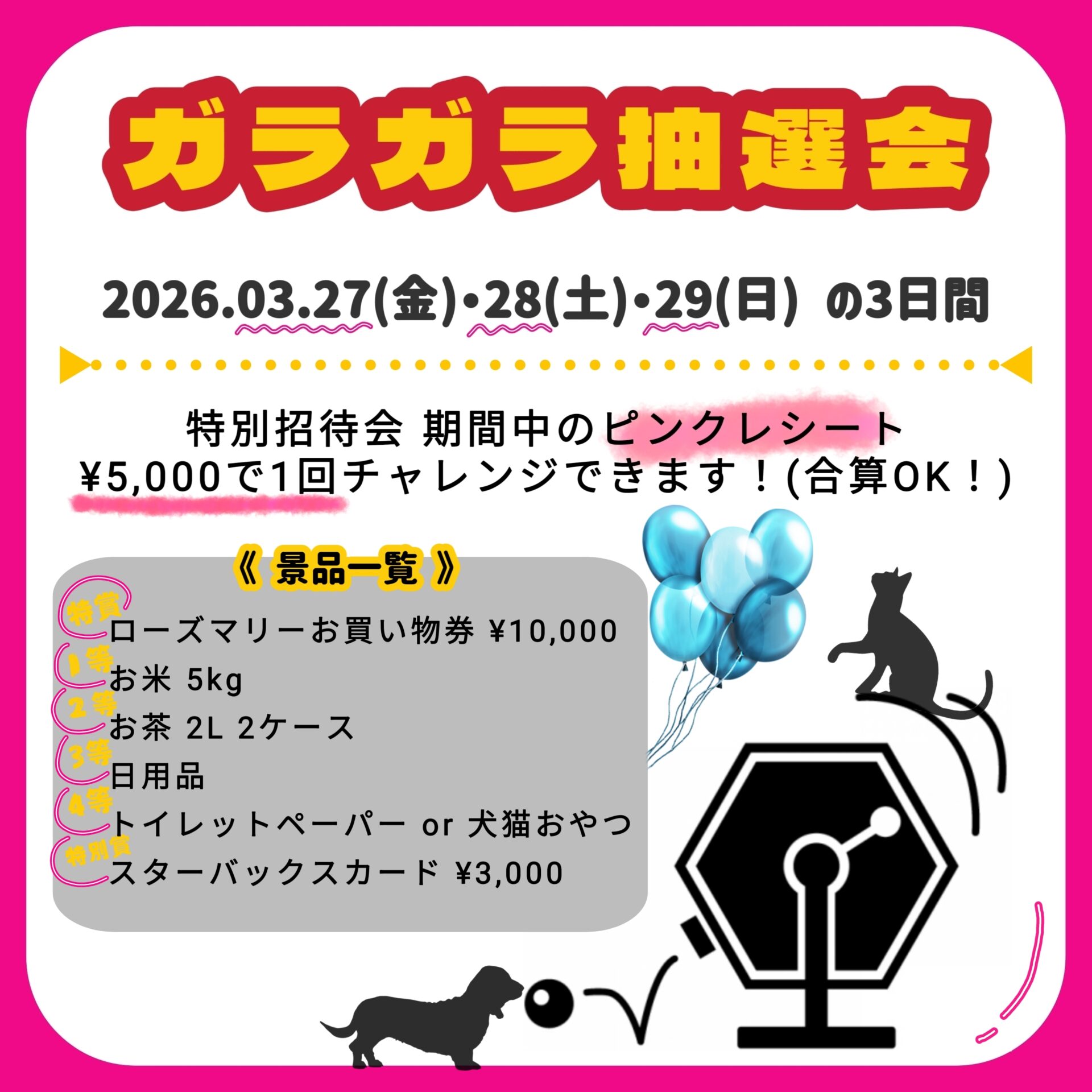 別日(3/27~3/29)開催のガラガラ抽選会にもご参加いただけます🌟!