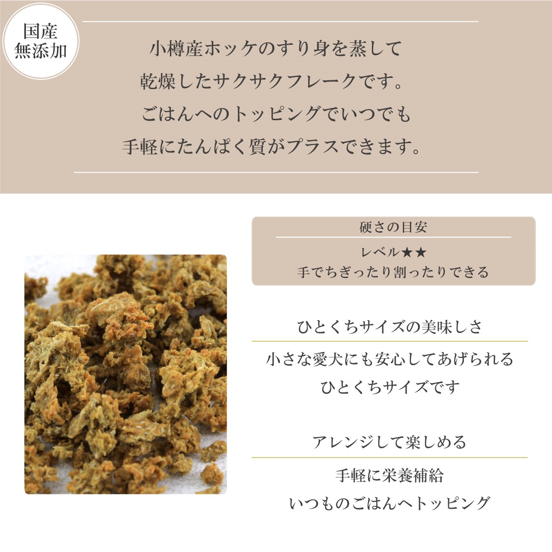 🌼小樽産ホッケのすり身を蒸して乾燥したサクサクフレークです。